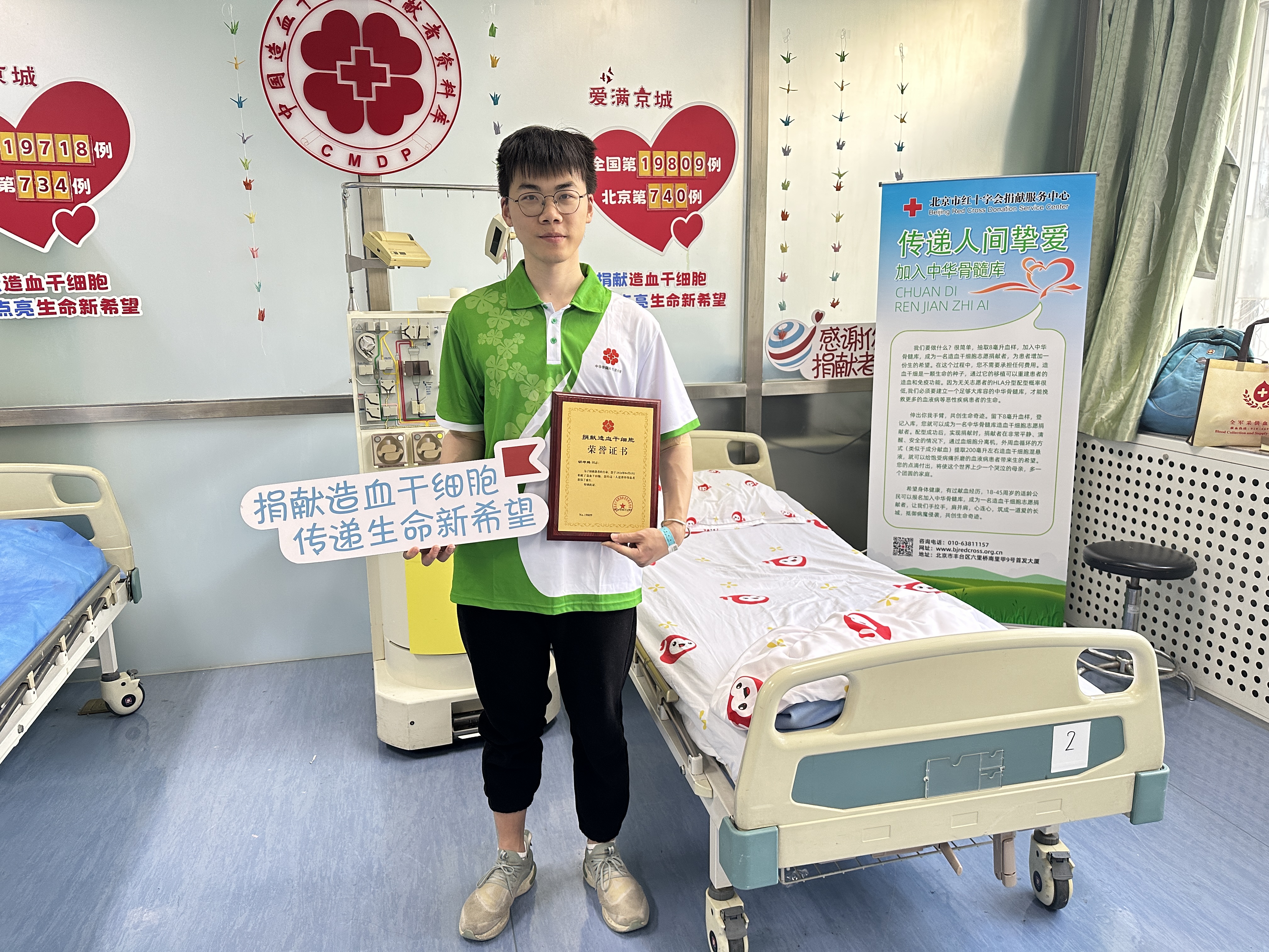4月16日,华亿平台_华亿(中国)一站式服务平台2021级本科生胡坤鹏在中国人民解放军第五医学中心顺利完成造血干细胞捐献,成为清华大学在校第26例、北京市第740例、全国第19809例配型成功并完成造血干细胞捐献的志愿者。他用自己的青春热血守护了一位陌生人的生命希望,谱写了一曲生命接力的感人篇章。